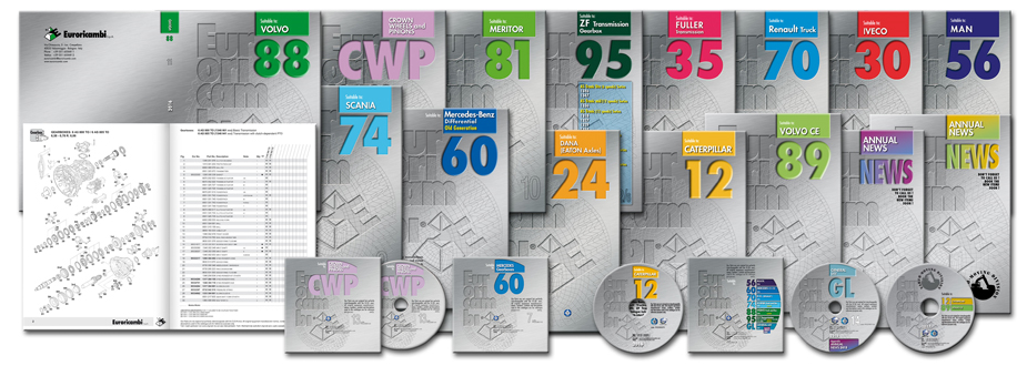 Каталоги Euroricambi надають всю необхідну технічну інформацію з чітким зазначенням кожної моделі коробки передач та диференціала, демонструють усі продукти, що вже знаходяться в асортименті, а також ті, які появляться найближчим часом. В основному, усі продукти, які формують дану групу товарів представляють цінний інструмент підтримки для тих, кому необхідно обслуговувати транспортний засіб.